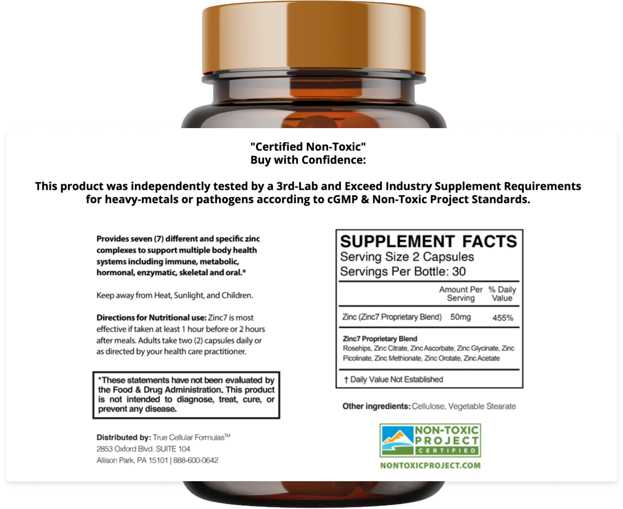 Zinc7 contains carefully measured doses for each of the 7 essential forms of zinc.